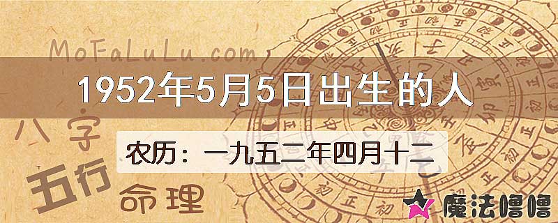 1952年5月5日阳历出生的人八字/五行/命理分析