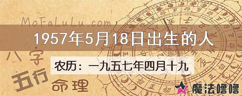 ▷农历1957年4月19日出生的人五行缺什么呢?