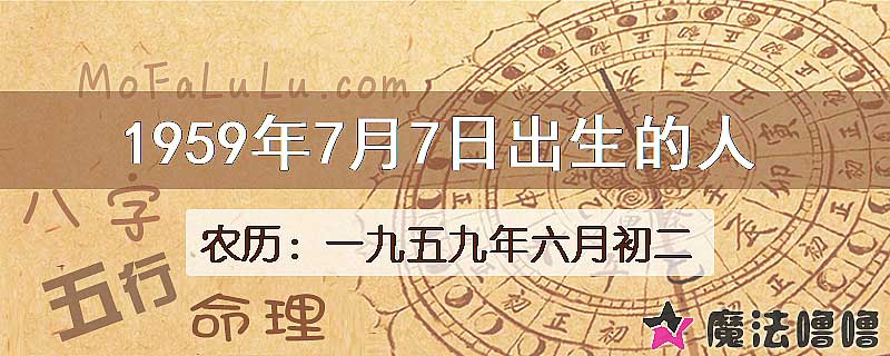 | 公历1959年7月7日 | 农历一九五九年六月初二 |