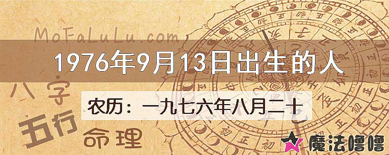 | 公历1976年9月13日 | 农历一九七六年八月二十 |