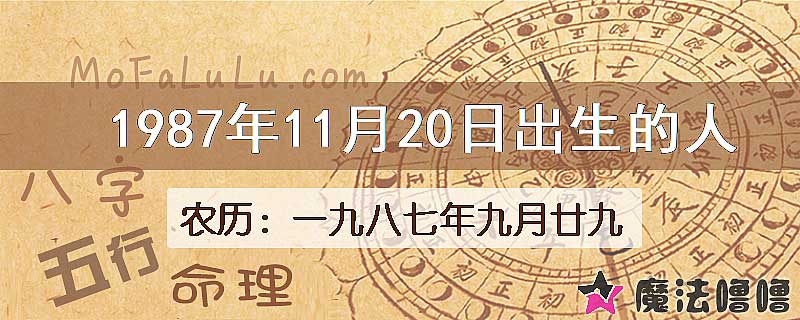 | 公历1987年11月20日 | 农历一九八七年九月廿九 |